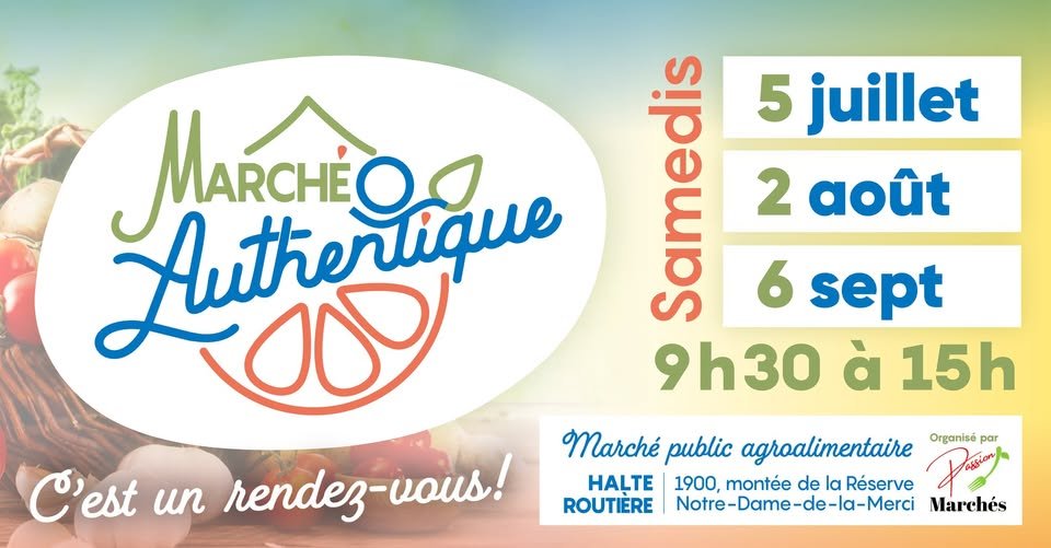 Marché Authentique Marché Authentique by 62 62 people viewed this event. Register for event To register for this event email your details to adotevi@gmail.com Register using webmail: Gmail / AOL / Yahoo / Outlook Date And Time 2025-07-05 to 2025-07-05 Location Halte routière du parc de la Rivière Dufresne (1900, montée de la Réserve à Notre-Dame-de-la-Merci)Share With Friends Facebook Twitter Linkedin Xing Pinterest Navigation de l'articlePREV POST Marché Public RADSTOCK – Sainte Marceline de Kildare NEXT POST Marché public de Mascouche